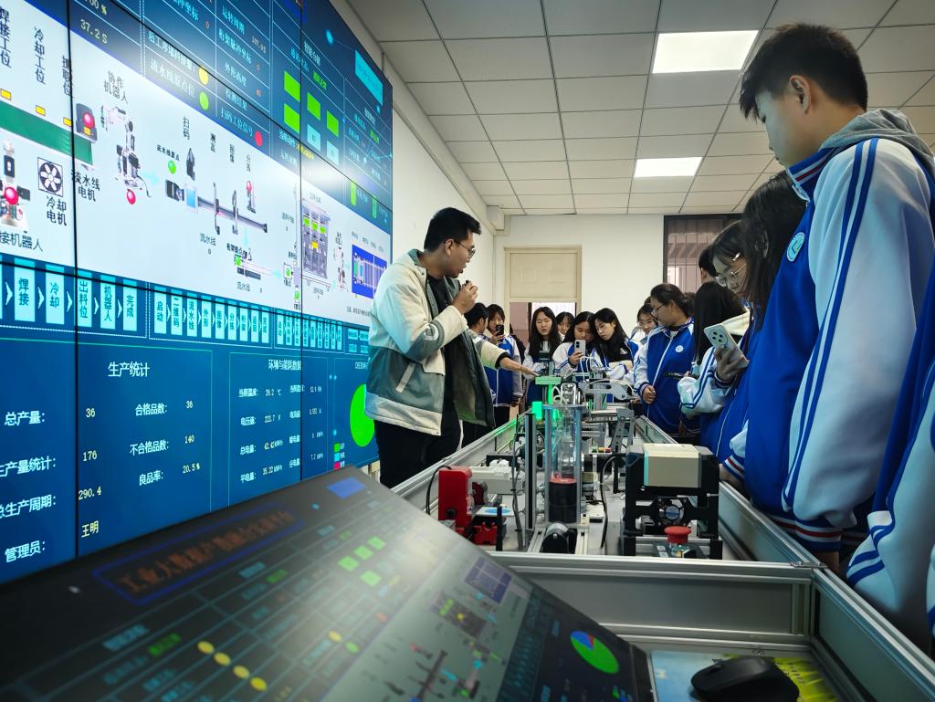 活动伊始,技师部师生在信息工程系教师和学生志愿者的引导下,依次参观了党史阶梯、党建长廊、“党建与课程思政VR体验中心”以及教室和机房。丰富的党建育人阵地与现代化的教学实训设施,为技师部学生提供了沉浸式的体验,使他们对未来高职阶段的学习环境和思政教育模式有了直观而深刻的认识。