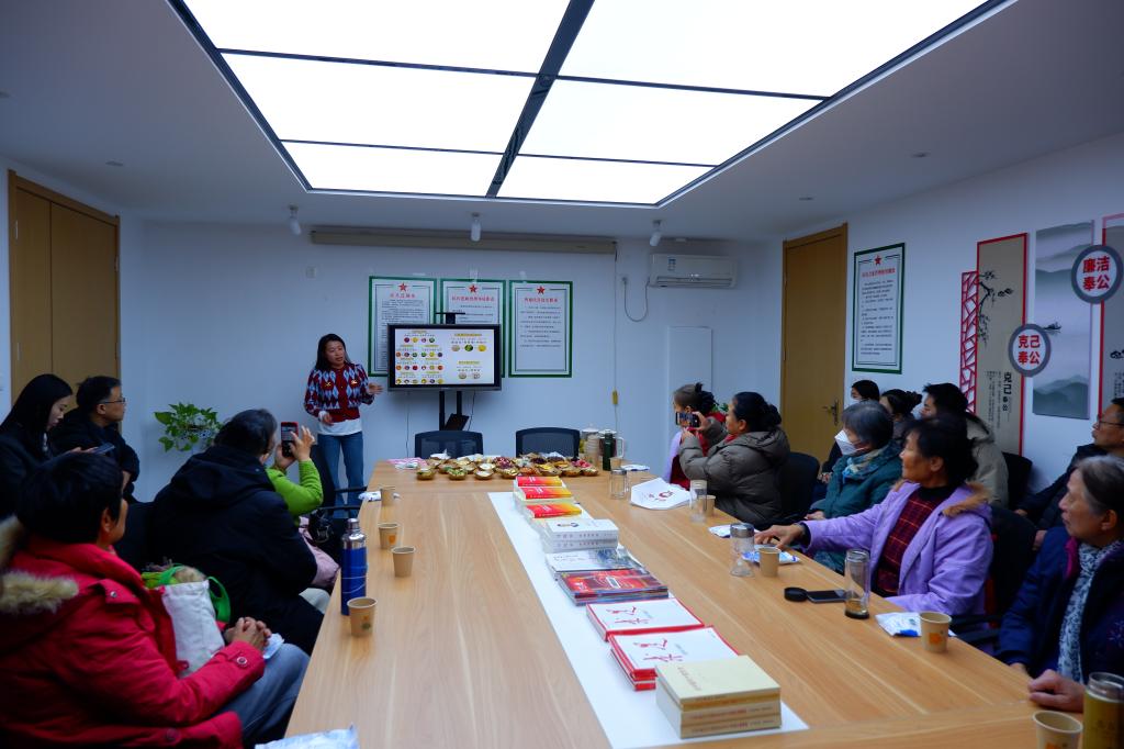 技师部刘艳艳老师向社区居民分享了优秀社区教育课程《老年生活七味指南—柴米油盐里的健康经》。她以“柴米油盐酱醋茶”为生活切口,结合老年人消化特点与饮食需求,用通俗语言拆解低盐烹饪、食材搭配等实用技巧:“煮菜先放糖再放盐,能减少盐的摄入”“菠菜焯水去草酸后,和豆腐同煮更健康”……在场老年居民围坐倾听,不时拿出笔记本记录要点。社区张阿姨笑着说:“刘老师讲的都是日常能用的‘干货’,以后做饭就按这个方法来!”这一环节将专业课程转化为居民可感的健康知识,实现“课程进社区”的服务目标。