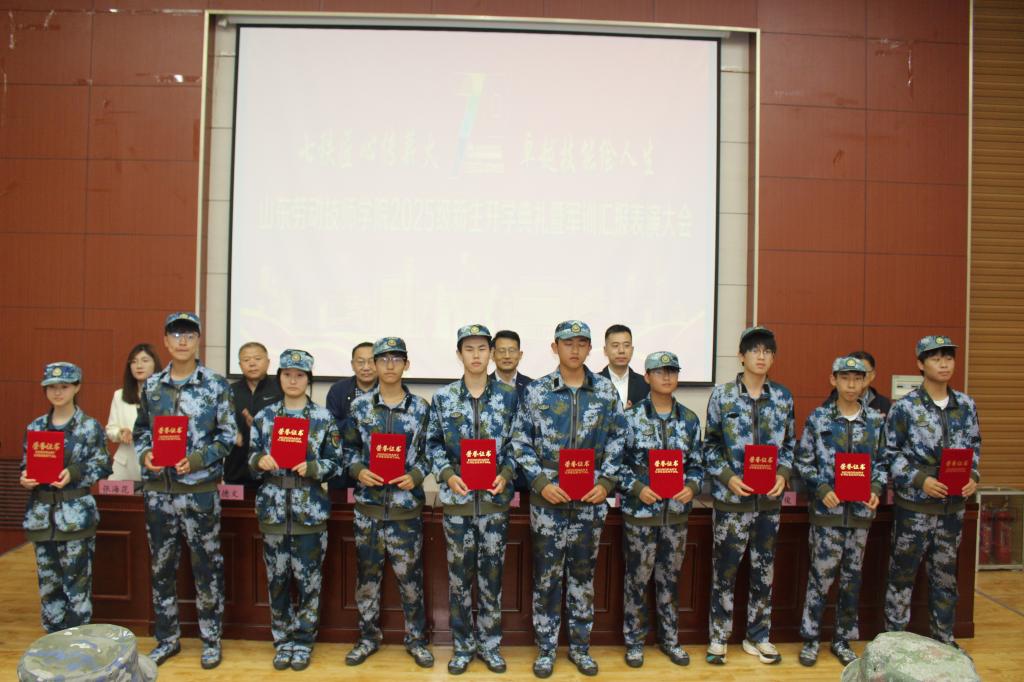 首先,大会进行表彰,由孙东宣读对先优集体和个人的表彰决定。荣获2025级新生军训“优秀教官”、2025级新生军训“优秀方队”、“军训内务优秀宿舍”、2024—2025学年第二学期学生先优集体和个人的获奖代表依次上台领奖。