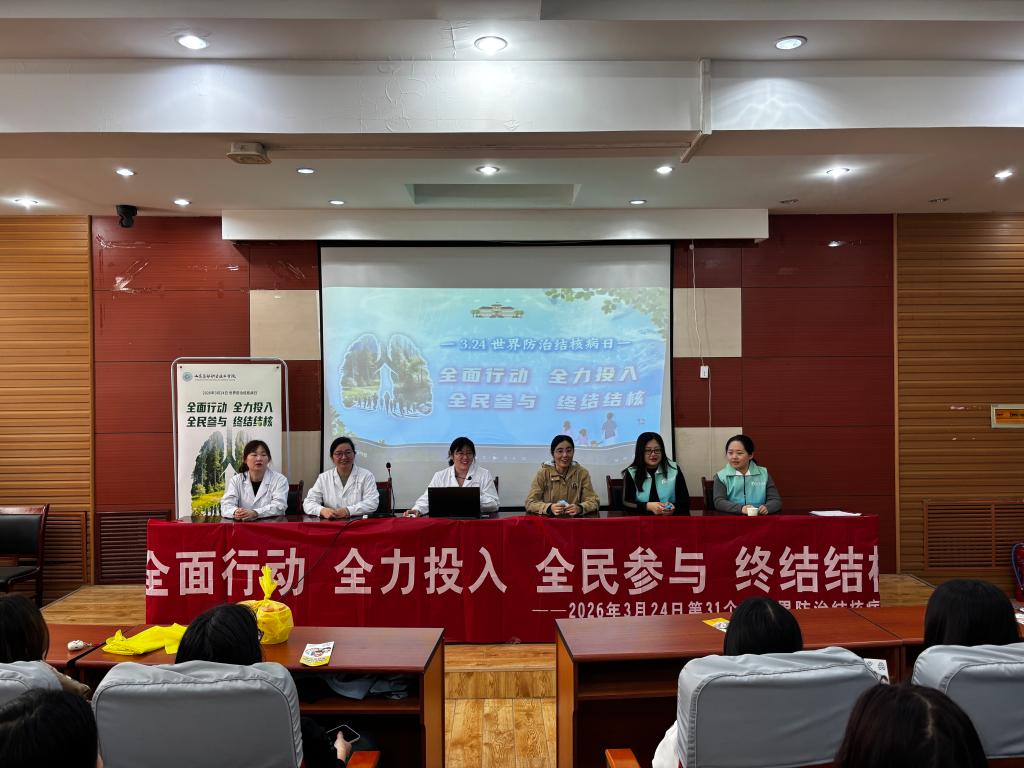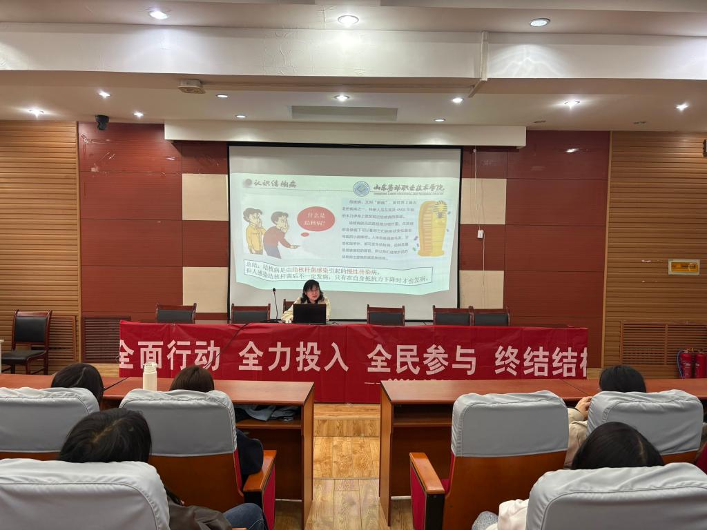 2026年3月24日是第31个“世界防治结核病日”,主题是“全面行动 全力投入 全民参与 终结结核”。为响应这一主题,进一步筑牢校园健康防线,增强学生结核病防范意识与自我防护能力,3月24日下午,技师部联合总务处邀请济南市槐荫区疾病预防控制中心专家来校,开展了一场以“青春同心 健康同行”为主题的结核病防治知识讲座。技师部芳华知芯社积极参与并协办了本次活动。总务处相关老师及社团指导老师出席活动,100余名学生代表参与。